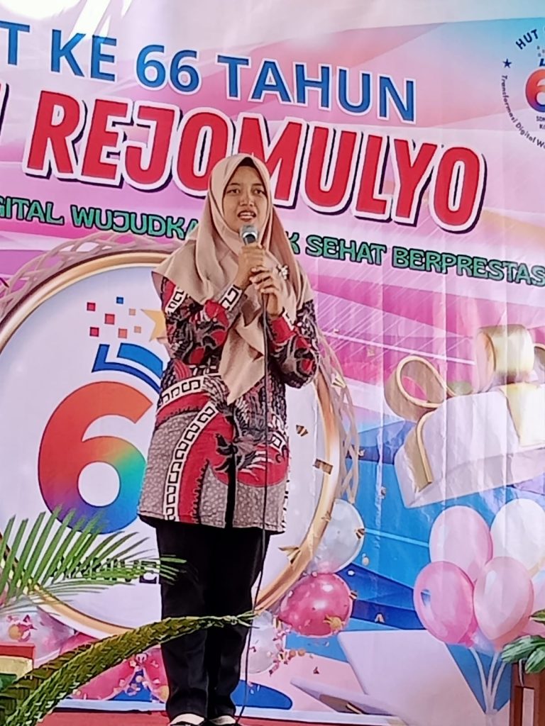 Peringatan HUT ke-66 SDN Rejomulyo berlangsung meriah dengan pawai keliling sekolah yang menampilkan gunungan snack dan busana dari olahan sampah plastik. Acara dilanjutkan dengan pentas seni siswa kelas 1–6, penyerahan hadiah lomba, tukar kado, serta pengundian doorprize utama berupa sepeda gunung. Kegiatan ini turut dihadiri oleh Ibu Lurah Rejomulyo, Babinsa, dan Bhabinkamtibmas, serta menjadi wujud kreativitas, kebersamaan, dan semangat seluruh warga sekolah.