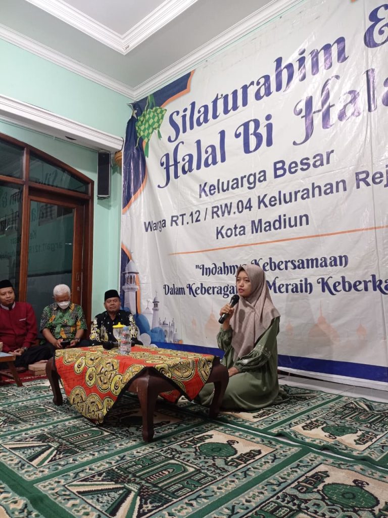 Dalam kesempatan tersebut, Ibu Lurah Rejomulyo menyampaikan apresiasi atas terselenggaranya kegiatan yang mampu mempererat tali silaturahmi di lingkungan masyarakat. Ia juga mengajak seluruh warga untuk terus menjaga kerukunan, meningkatkan kepedulian sosial, serta bersama-sama membangun lingkungan yang harmonis dan kondusif.